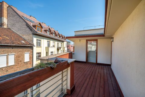 Budapest I. kerületében, a csendes és mégis kiváló elhelyezkedésű Batthyány utcában kínálunk megvételre egy 108 m²-es, körteraszos penthouse ingatlant, amely ritkaságnak számít a környéken.