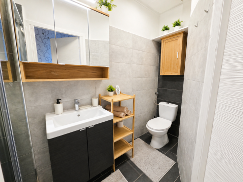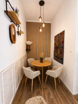 A lakás csendes, világos, udvarra néző ablakainak köszönhetően nyugodt otthont biztosít a belváros közvetlen közelében.