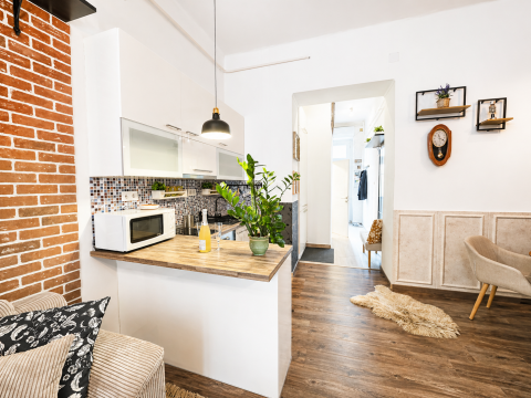 A lakás az M4-es metrótól pár perc sétára a Berzsenyi utcában található , kiváló lokációban a Blaha Lujza tér és a Keleti pályaudvar között.