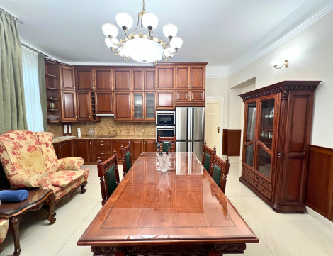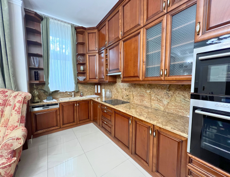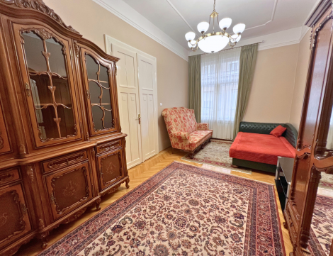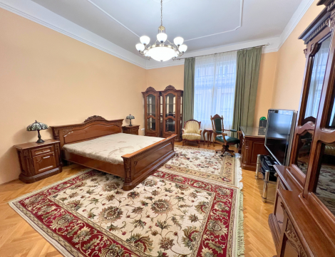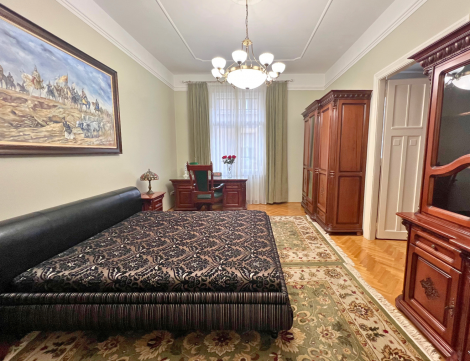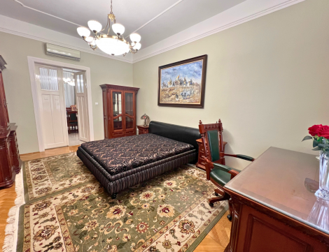 A lakás kiváló minőségű, németországi gyárból származó bútorokkal van berendezve, amelyek egyedülálló hangulatot biztosítanak ennek a nagypolgári lakásnak.