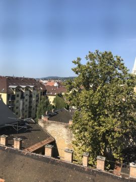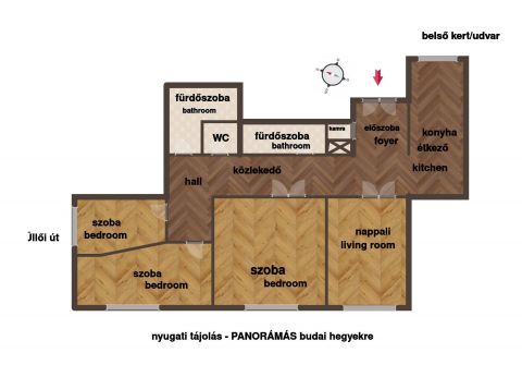 Zum Verkauf steht eine helle, großzügige Eckwohnung im obersten Stock mit herrlichem Blick auf die Budaer Berge, die umliegenden Straßen und den Innenhof.