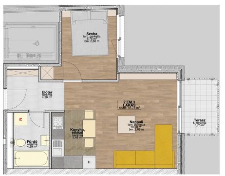 Élhető terek: Minden lakáshoz tartozik egy tágas, 5nm- 30 nm közötti terasz.
