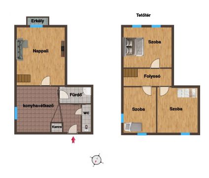 A lakás tágas, három szobából áll, melyek a tetőtér adottságait kihasználva különleges életteret alkotnak. A helyiségek elrendezése és a belső két szintes kialakítás maximális kényelmet garantálnak a lakók számára.