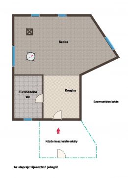 - A lakás a lépcsőházból egy kis közös előtéren keresztül közelíthető meg, amely erkélyszerű, leválasztott érzetet biztosít