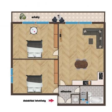 -Könnyedén kialakítható: 2 hálószoba + amerikai konyhás nappali