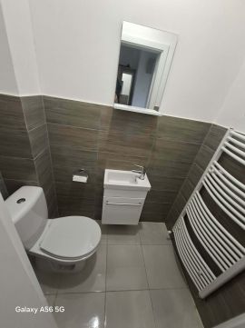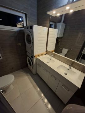 Beépítésre került egy új kondenzációs gázkazán radiátoros hőleadással, a fürdőszobák teljesen megújultak, elegáns járólap- és csempeburkolatokkal.
