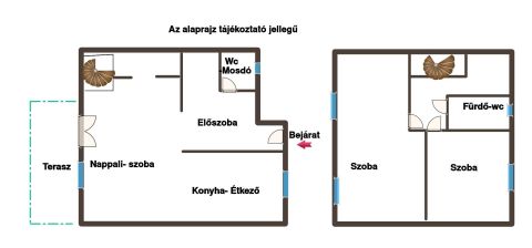 A felső szinten két kényelmes hálószoba, valamint egy fürdőszoba WC-vel található.