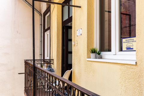 Megújult Jókai tértől lépésekre, 2025-ben homlokoztai felújításban részesült polgári épületben található ez az