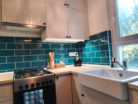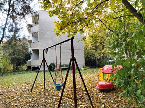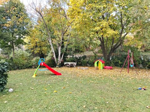 A lakás egy kislétszámú, 9 lakásos társasház első emeletén található. A házhoz egy nagy, fákkal körülvett kert tartozik, ahol gyerekjátszótér, pihenésre és szabadidős tevékenységekre is alkalmas zöldterület áll a lakók rendelkezésére.