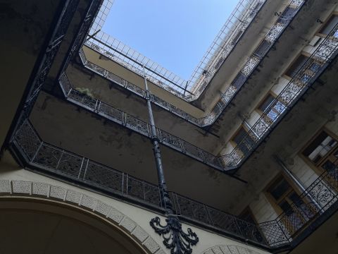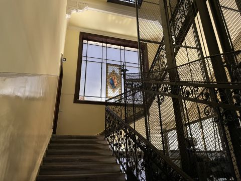 The condominium is in excellent condition, well-maintained, and preserves original stained-glass decorations and ornate wrought-iron railings. Residents' comfort is ensured by a newly installed modern elevator, making the building accessible (barrier-free) up to the apartment. The property includes two large, lockable storage units (5 and 6 sqm) in the basement, which the owner has fitted with false flooringextremely helpful during construction and for future use.