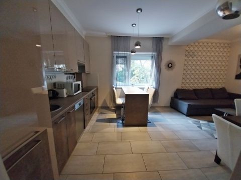 Szeged-Belváros peremén, TIK szomszédságában 61,0 m2-es, exkluzív, minimál stílusú, amerikai konyha+nappali, két hálószobás, loggiás, bútorozott 1.emeleti társasházi téglalakás igényes bérlő részére hosszú távra kiadó. Kaució szükséges.