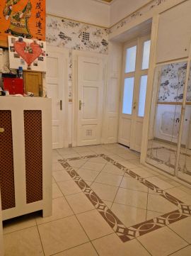 Győr történelmi belvárosában kínálok eladásra egy 83 m²-es, nagypolgári stílusú, 2 szobás bútorozott lakást egy liftes körfolyosós társasházban.