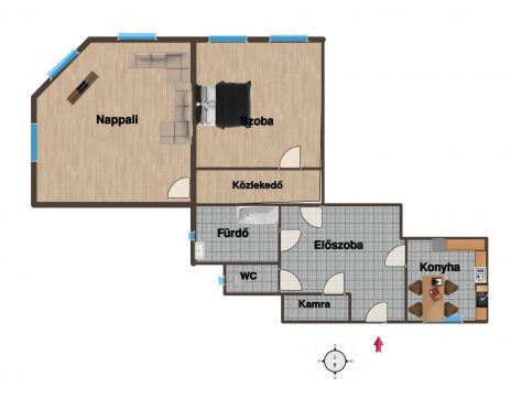 Győr Belvárosában eladó 2 szobás, jó állapotú nagypolgári lakás liftes társasházban!