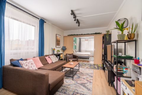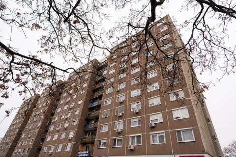 A lakás egy 10 szintes, liftes társasház 4. emeletén található. Az épület rendezett, a lakóközösség jó.