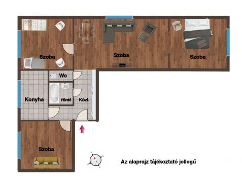 78 m²-es, felújított lakás ideális elosztással: 3 különnyíló szoba + tágas nappali