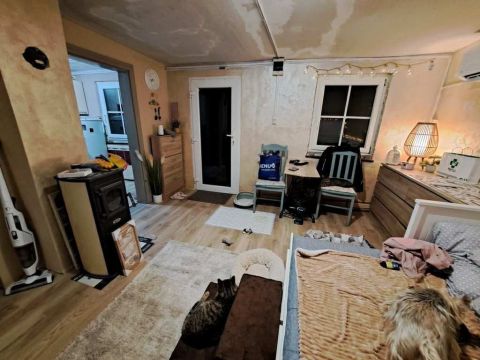 Az ingatlan csendes, fás környéken, a hegy lábánál helyezkedik el, a főúttól pár száz méterre van. Buszmegálló 5 perc alatt elérhető.