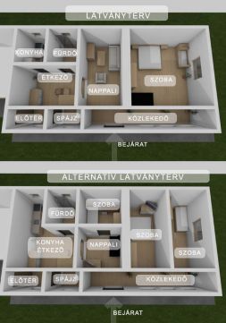 - Az alaprajz kisebb átalakítással 3 félszobás elrendezést is lehetővé tesz!