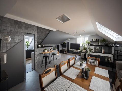 A tetőtér tágas és jól elrendezett, itt található egy cserépkályha is, amely hangulatos meleget biztosít a téli hónapokban is. Igény szerint még két félszoba kialakítható.