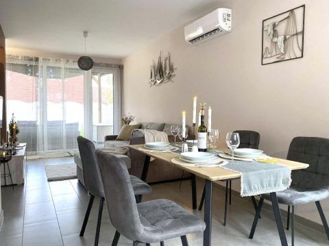 Balaton déli part, Zamárdi, üdülőövezeti 67 m2 lakás eladó saját kertrésszel, parkolóval! A korszerű energetikai követelmények szerint, 2020-ban épült 9 lakásos társasház teljesen újszerű, gondosan karbantartott. Fűtését hőszivattyú biztosítja H tarifás mérőórával, padlófűtés kiegészítéssel, a falakon 15 cm szigetelés, a nyílászárók 3 rétegűek, távirányítható redőnnyel szereltek, a meleg vizet elektromos bojler adja. A lakásokhoz tartozó szeparált kerteket és a közös használatú kertrészeket kertész tartja rendben. A lakáshoz 1 db férőhely biztosított zárt kapun belül, a társasház parkolójában. További parkolási lehetőség a ház vendégparkolójában, utcán, közterületen ingyenesen. Az ingatlan lokációja miatt ideális nyaralóként, vagy kereskedelmi szálláshelyként történő hasznosításra is. A Balaton-parttól 600 méterre, a központtól, vasútállomástól 400 méterre található. Rugalmasan megtekinthető, előzetes időpont egyeztetést követően. Részletekért kérem, hívjon!