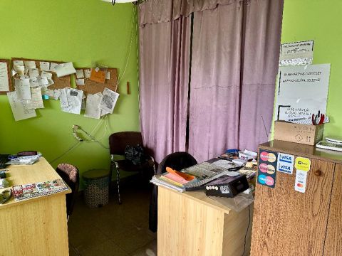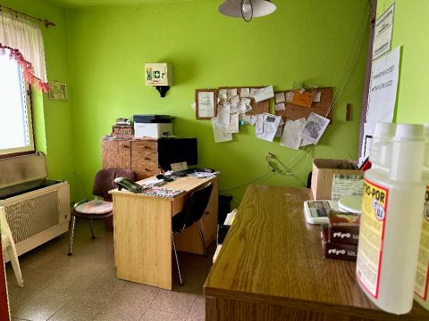 A telep két utcáról, aszfaltozott úton megközelíthető, tolókapus bejárattal. Az ingatlanon egy 2001-ben épült tégla falazatú, beton födémes, nyeregtetős irodaépület található, közvetlenül irodahelyiség, ügyféltér, teakonyha és mosdó is kialakításra került. Az épület fűtését gázkonvektorok biztosítják, a melegvizet villanybojler szolgáltatásával. A fa nyílászárók hőszigetelt üvegezéssel rendelkeznek. Az iroda előtt egy 10 m2 fedett terasz található.