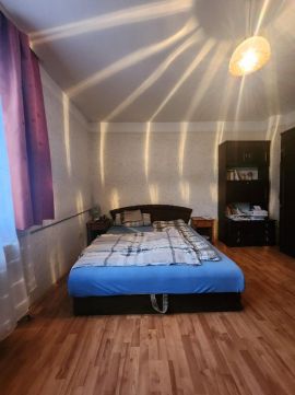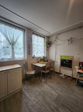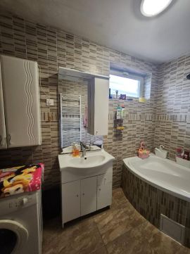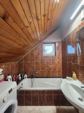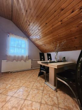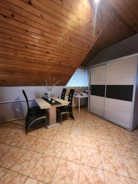 2 szobát, konyhát étkezővel, fürdőszobát A házhoz tartozik egy tágas, több helyiségből álló szuterén WC-vel, amely kiválóan alkalmas tárolásra, műhelynek vagy akár autószerelő vállalkozás számára is. A fedett autóbeálló kényelmes parkolást biztosít több gépkocsi számára.