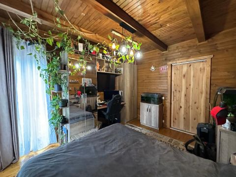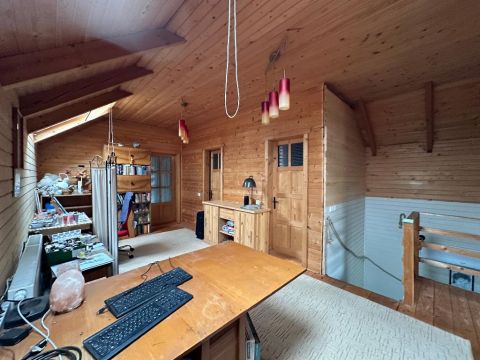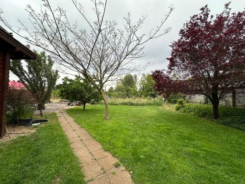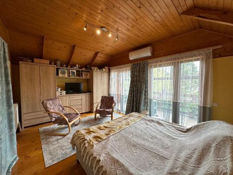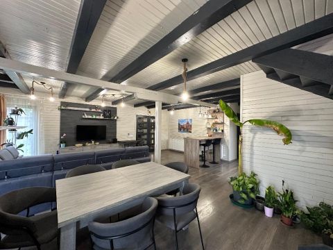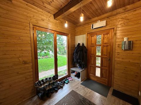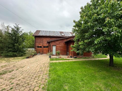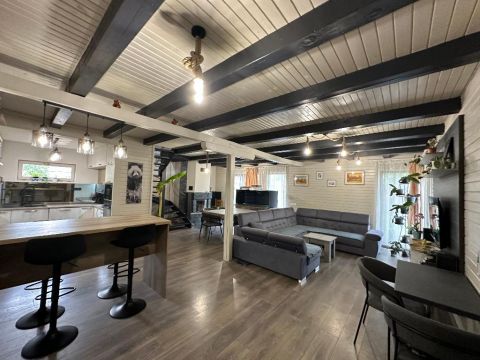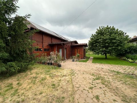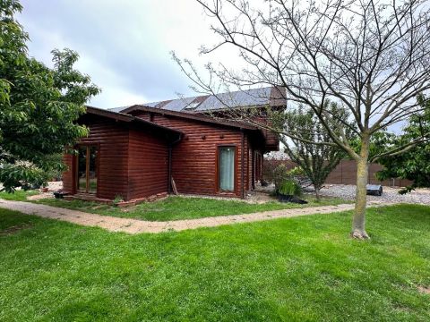 Egy igényesen felújított 142 nm-es, gerendából épült családi ház eladó, 1233 nm-es parkosított telken, rendezett, csendes környezetben!