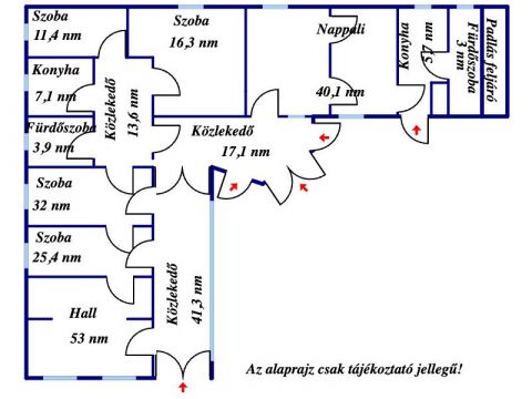 Az ingatlan főbb helyiségei: 4 tágas szoba, 2 konyha, 2 fürdőszoba, reprezentatív közlekedők és 53 nm hall, boltívek, díszes nyílászárók, jelentős belmagasság