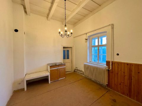 Kiszolgáló lakrész (önálló egységként is használható felújítást igényel): előszoba (8 négyzetméteres), kamra (2 négyzetméteres), fürdőszoba (10 négyzetméteres), 3 különálló szoba (15, 16 és 17 négyzetméteres)