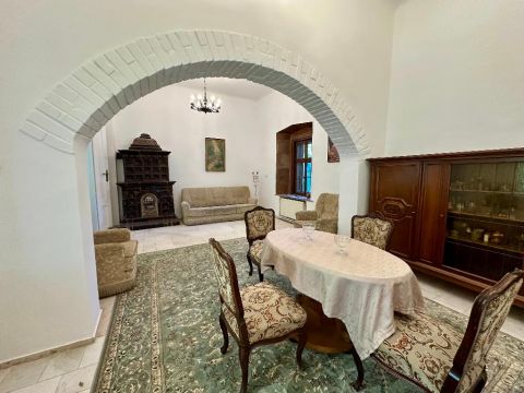 A főépület részben felújított, gondosan karbantartott, azonnal használatba vehető. A kert ős fás, gondozott, klasszikus kúriahangulatot áraszt. A teraszkapcsolatok és a díszített homlokzati elemek harmonikusan illeszkednek a történelmi örökséghez.