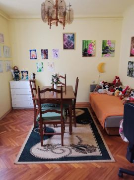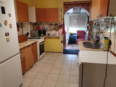 A konyha, fürdőszoba járólappal borított, míg a többi helységben laminált parketta a burkolat. A fa nyílászárók jó állapotúak.