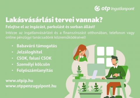 A vásárlást kedvezményes OTP hitelekkel támogatjuk. Falusi csok, csok plusz igénybe vehető.