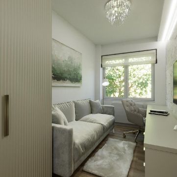 Lakberendezői tervezés az átalakítás minden eleme szakértői támogatással történt, és a lakberendező a jövőbeni berendezésben vagy újratervezésben is rendelkezésre áll. A hirdetés fotói a lakás jelenlegi állapotát és a tervezett dizájnt egyaránt tükrözik.