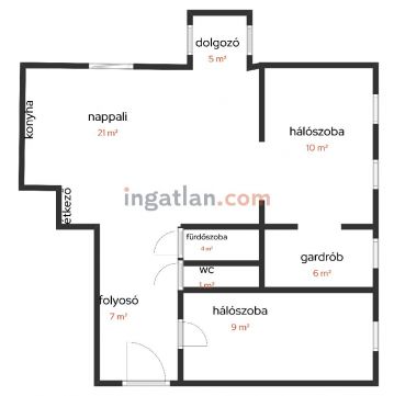Az ingatlan valódi alapterülete 63 m2, jól átgondolt elrendezéssel: