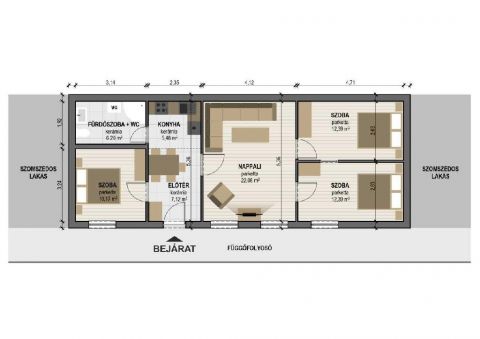 Három külön hálószoba, így kényelmes otthont biztosít családnak, pároknak vagy akár befektetőknek.
