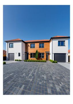 Telek alkalmas lehet 2 lakásos társasház építésére, amiről készült egy látványterv is.