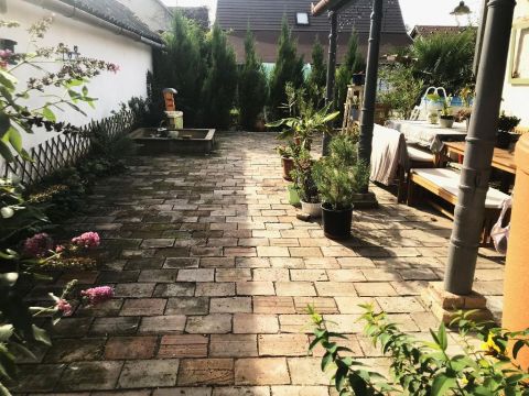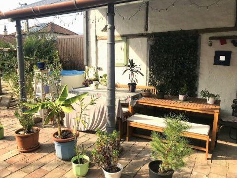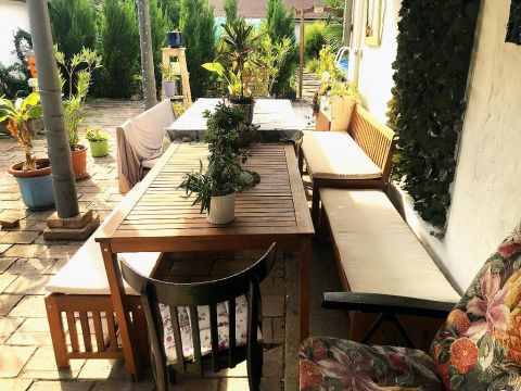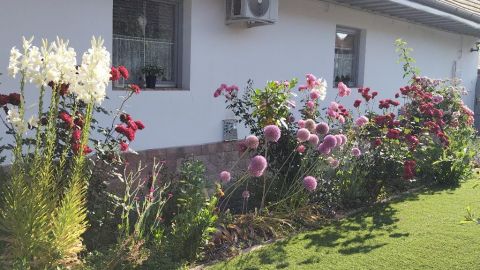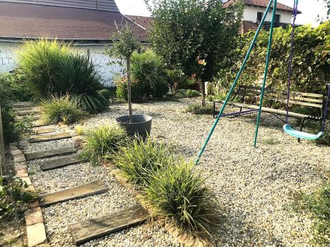 Az ingatlanhoz tartozik, egy több részre osztott udvar, mely kerttervezők által lett kialakítva! A gondozott, első rész virágos kertként használható, a középső rész egyszerre ideális a pihenésre, szabadtéri családi rendezvényekre, grillezésre. A hátsó rész pedig egy ápolt zöldséges kiskertté lett alakítva.
