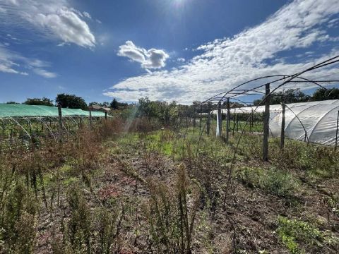 A házhoz tartozik őstermelői célra használt földterület, melyen fóliasátrak találhatók. Itt fúrt és ásott kútról is lehet vizet nyerni a locsoláshoz. A kertben még gyümölcsfák és szőlőlugas is fellelhető.