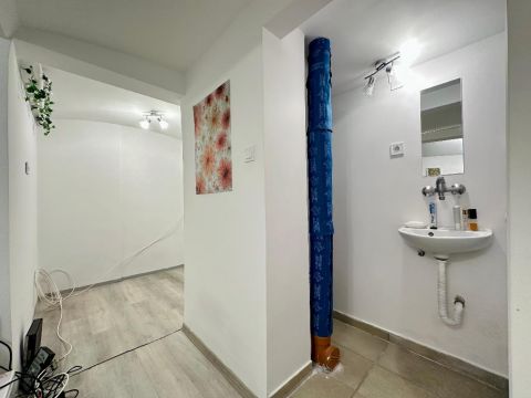 Ez a 18 m?-es, világos, ablakos lakás egy rendezett, csendes és kulturált lakóközösségű házban található, közvetlenül egy park mellett, forgalomtól mentes környezetben.