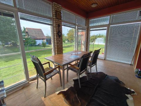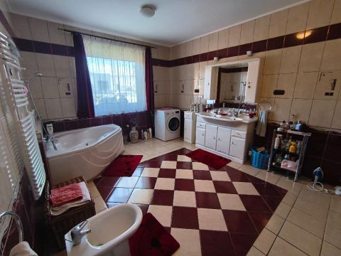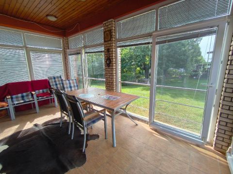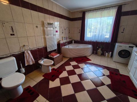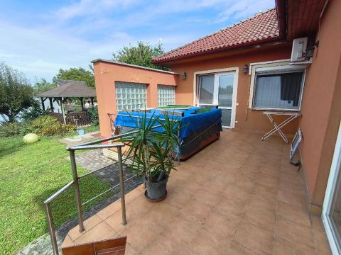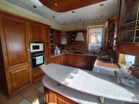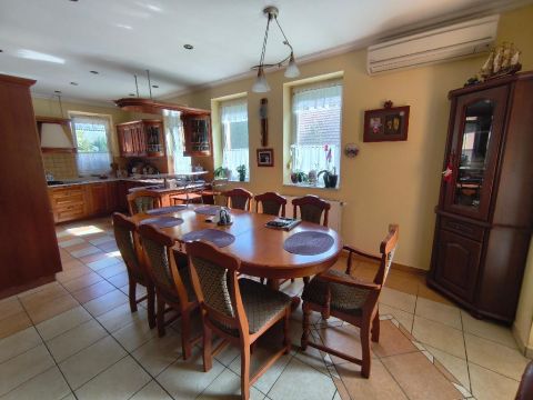 Fejér megye Kápolnásnyék 220 nm-es egyszintes családi ház eladó. A 2006-ban épült, tégla falazatú, szigetelt ingatlan a település csendes, családi házas övezetében egy 1428 nm-es gyönyörűen parkosított, folyamatosan gondozott telken helyezkedik el. A családi házat tágas terek jellemzik, amerikai konyhás nappali, 3 szoba, 1 kamra, 1 kádas fürdőszoba, 1 zuhanyzós fürdőszoba szaunával,1 külön WC, gardróbszoba, 2 tároló található benne, valamint tartozik hozzá egy 47,2 nm-es garázs, 4,3 m-es terasz és egy 55 nm-es fedett terasz jacuzzival. Az ingatlan hasznos alapterülete 167,6 nm, melyhez a garázs és a két fedett terasz fele bele lett számolva a meghirdetett alapterületbe, viszont a különálló melléképületek nem. Az ingatlan jogilag rendezett és tehermentes. A telek végében két különálló melléképület található, melyből az egyik tárolásra, a másik önálló kétszintes kisház 58 nm-es, akár kiadásra, otthoni vállalkozásnak, műhelynek, családi rendezvényeknek adhat otthon. A garázson felül a térkövezett udvaron több autó számára beállási lehetőség biztosított, a telken öntözőrendszer, bográcsozó, jacuzzi is található, Az összes nyílászáró műanyag és redőnnyel felszerelt. A fűtésről gázkazán gondoskodik, a nappaliban padlófűtéses, a többi helyiségben radiátoros hő leadással, ezenfelül a nappaliban található egy hangulatos cserépkályha, az ingatlanban pedig 3 db klíma. Az épület 6 kw-os napelemmel felszerelt. Nyugodt, biztonságos környék, átmenőforgalomtól mentes utcában, a vasútállomás 15 perces kényelmes sétával elérhető. Amennyiben felkeltette az érdeklődését, további kérdések esetén várom hívását, akár hétvégén is! Kedvezményes kamatú hitellel, teljes körű ügyintézéssel segítjük ügyfeleinket díjtalanul, az adásvétel és ingatlanátírás teljes lebonyolításával.
