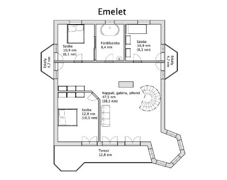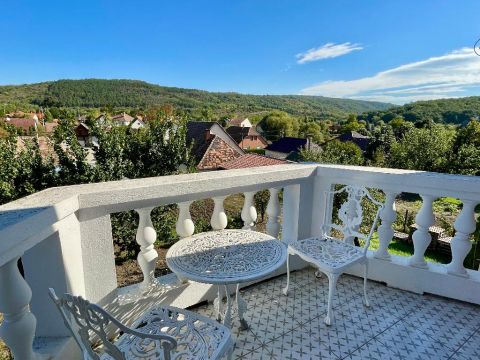 A házhoz három erkély és egy nagy terasz tartozik, ahonnan gyönyörű panoráma nyílik a Cserhát lankáira. A kert és az udvar rendezett, füves, ideális pihenéshez és családi együttlétekhez. Parkolás a kétállásos garázsban megoldott, a ház előtti saját telekrészen is lehetőség van megállni, emellett az udvarban további autók kényelmesen elférnek.