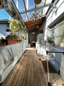 Eladó Rákospalota családi házas övezetében egy 91,81 m2-es lakás, előtte lévő terasz, 18,55 m2 50%-a beszámítva , 91,81+9,27 = összesen 101,1 m2, amely egy 1.111 m2-es osztatlan közös tulajdonú telken helyezkedik el, de önálló helyrajzi számmal. A lakás egy tégla építésű, kívül belül teljesen felújított épületegyüttesben található, a közös udvarról nyíló önálló bejárattal, nagy 18,55 m2-es fedett, burkolt terasszal. A lakás helyiségei: Előszoba 4,68 m2, Fürdőszoba, WC 13,53 m2, közlekedő 3,64 m2, Konyha, étkező 30,10,5 m2, hálószoba 14,39 m2, nappali szoba 19,22 m2, tároló, gardrób szoba 6,27 m2, közlekedő 3,64 m2, és a már említett 18,55m2 fedett szépen burkolt terasz. 2010 évben a lakáson belül is minden felújításra került, nagyon szép faszerkezeteket láthatóvá hagyva. A lakásban radiátoros központi fűtés van, pincében egy nagyteljesítményű vegyes tüzelésű kazánnal, de található benne egy nagyméretű cserépkályha is, mint alternatív fűtési lehetőség. Klímára ebben a lakásban nincs szükség, egyrészt vastag szigetelt falak miatt, másrész a lakás alatt pince van, ami nyáron a nagy melegben aluról hűti a lakást. Ennek a kialakításnak köszönhetően a lakás alacsony rezsivel rendelkezik, saját közüzemi mérő órákkal, a vízfogyasztás mérését almérő biztosítja. A telken még két eladó lakás, egy üresen álló bolt és pékség, valamint az udvarban kisebb nagyobb tárolók, raktárhelyiségek is találhatók. Az ingatlan részben alápincézett, ott szintén tárolók, raktárhelyiségek vannak. Az ingatlannak egy tulajdonosa van, 1/1 tiszta, tehermentes tulajdon, amely egy cég, a teljes ingatlan is eladó egyben, akár a céggel együtt is, a cég tiszta, bármikor ellenőrizhető. Az ingatlan rendelkezik ügyvéd által ellenjegyzett megosztási/használati szerződéssel, amely pontosan szabályozza, meghatározza, hogy melyik lakáshoz mi tartozik. Mint már írtam teljesen felújított lakásról beszélünk, ide csak költözni kell! Közlekedés szempontjából, az ingatlan, lakás elhelyezkedése kedvező. Az M3 Szerencs utcai lehajtójától 5 percre, az Eötvös utcától, ahol a 25-ős busz közlekedik 2 percre található. Rákos út, ahol az 5-ös busz útvonala van, gyalog 10 perc séta. Az 5-ös busszal az egész belváros megközelíthető egészen a Budán található Pasaréti térig. Rákospalotai SZTK, gyógyszertárak, óvodák, iskolák, boltok, éttermek, üzletek mind megtalálhatóak a közelben. Amennyiben felkeltette érdeklődését az általam kínált ingatlan, keressen bizalommal.