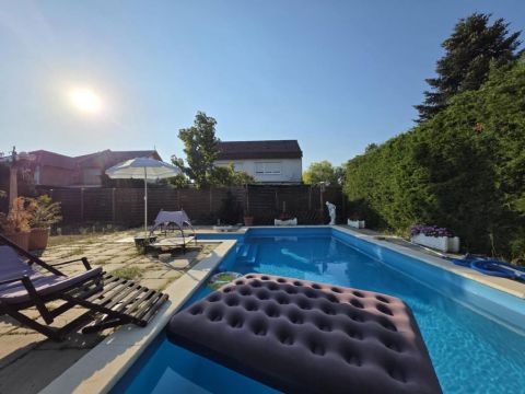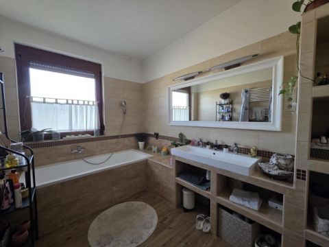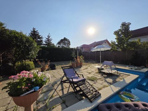Ganzkertváros - Tágas, napfényes családi ház eladó medencével és óriási teraszokkal Ganzkertváros nyugodt, csendes, családbarát környékén kínálunk megvételre egy 2007-ben épült, 150 nm alapterületű, 5 szobás, két szintes, körbejárható családi házat, amely kívülről kiváló állapotban, belül jó állapotban várja új tulajdonosát. Az ingatlan 1/1 tulajdonban van, jogilag teljesen rendezett tulajdoni lappal, így a vásárlás gördülékenyen intézhető. A földszinten tágas, napfényes amerikai konyhás nappali fogadja a vendégeket, ahonnan közvetlen kijárat nyílik a hangulatos teraszra és a gondozott kertbe. A konyha modern, praktikus elrendezésű, bőséges tárolóhellyel, étkezőrésszel. A nappali nagy üvegfelületei egész nap természetes fénnyel árasztják el a helyiséget. Az emeleti szinten találhatóak a hálószobák, köztük egy tágas, gardróbbal kiegészített főháló, valamint egy óriási erkély, ahonnan gyönyörű kilátás nyílik a környékre. A fürdőszobák kényelmes méretűek, korszerű berendezésekkel. A kert a ház igazi éke: medencével, rendezett zöldfelülettel, árnyas pihenősarokkal, tökéletes helyszín a nyári kikapcsolódáshoz és baráti összejövetelekhez. A telken két autó kényelmesen elfér a kocsibeállón, amely elektromos kapuval ellátott, biztosítva a kényelmet és a biztonságot. Jelenleg az ingatlanban bérlő lakik, aki kulturált, megbízható és nagyon szívesen folytatná a bérlést hosszú távon, amennyiben a leendő tulajdonos befektetési céllal vásárolná meg a házat. Ez kiváló lehetőség azoknak, akik biztos, stabil hozamot szeretnének egy értékálló ingatlanból. A környék kifejezetten barátságos, családias hangulatú, a szomszédok segítőkészek és csendesek. A mindennapi élethez szükséges üzletek, szolgáltatások, iskolák és óvodák könnyen elérhetők, a közlekedés is kiváló. Főbb jellemzők: Építés éve: 2007 Alapterület: 150 m? Szobaszám: 5 Két szintes, körbejárható családi ház Kívül kiváló, belül jó állapot Napfényes amerikai konyhás nappali Óriási erkély és terasz Medence a kertben 2 autós kocsibeálló elektromos kapuval 1/1 tulajdon, tehermentes Megbízható bérlő, hosszú távon is maradna Ez az ingatlan tökéletes választás lehet családok számára, akik szeretnének egy tágas, világos, barátságos otthonban élni, csendes, biztonságos környezetben ? ugyanakkor kiváló befektetési lehetőség is, stabil bérleti háttérrel. Amennyiben hirdetésem felkeltette a figyelmét, úgy forduljon hozzám bizalommal! Várom megtisztelő hívását!