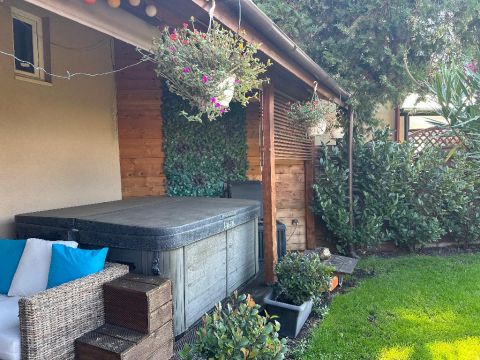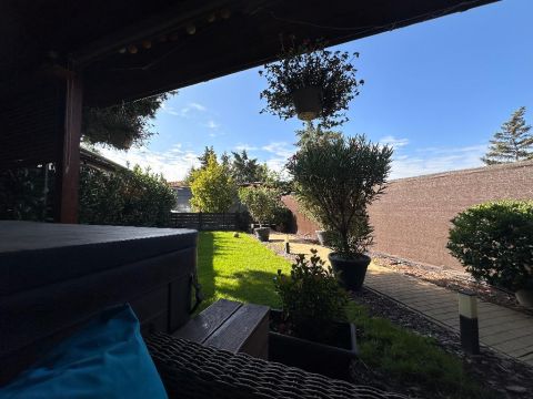 Automata vezérlésű dekorvilágítás mozgásérzékelőkkel, reflektorokkal teszi varázslatossá a teljes kertet és a 23 m2-es fedett teraszt, ahol még egy 6 személyes jakuzzi is helyet kapott, amely télen-nyáron tökéletes relaxációs élményt biztosít.
