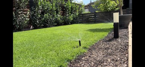 A szakszerűen parkosított udvar, öntözőrendszerrel, kerti zuhannyal ellátott, minden növény számára.