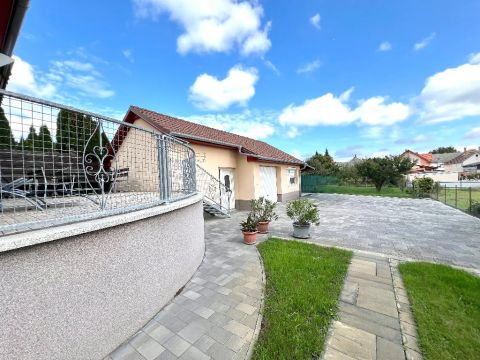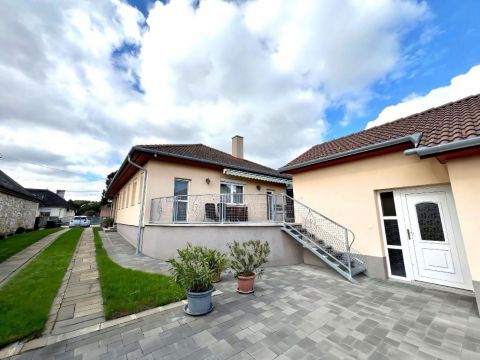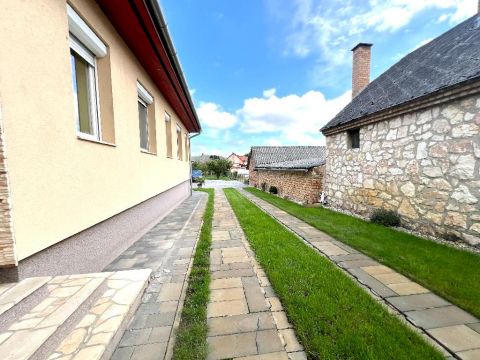 A ház melléképületei: a garázs, pince és fatároló, egységes, korszerű és gondozott állapotban várja új tulajdonosát.