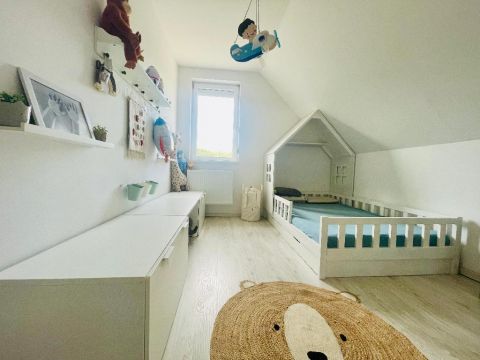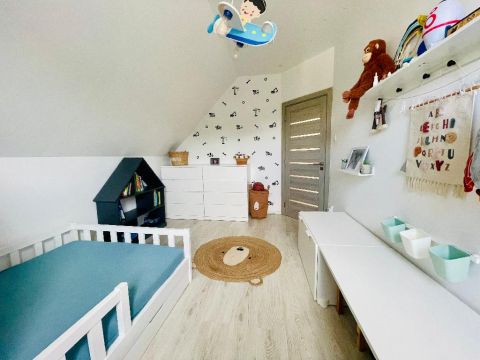 A földszinten tágas, napfényes nappali-konyha-étkező egy légtérben, fürdőszoba, külön WC, tároló és nagy terasz található. Az emeleten három hálószoba, egy külön mosószoba és WC került kialakításra. A pincében kazánház és több tárolóhelyiség biztosítja a praktikumot.