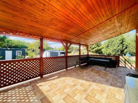 Az udvar parkosított, 100 nm térkövezett résszel, dupla garázzsal és két fúrt kúttal. A hatalmas telek kertészkedésre, gazdálkodásra vagy akár további fejlesztésre is kiválóan alkalmas.