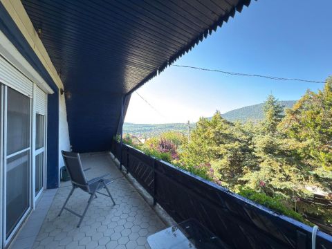 Eladó egy 220 nm-es, kétszintes családi ház egy 651 nm-es, gondozott telken, a Pilis gyönyörű panorámájával.