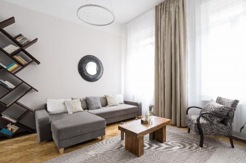 A lakás a 2.emeleten található, magas minőségben, extrán felújított, polgári miliő, 3,6m belmagassággal, napfényben úszó nappalival, hálóval. Elosztása praktikus, jól használható. Amerikai konyhás nappali, bárpulttal, felszerelt konyhával, étkező sarokkal, 2 hálószobával, fürdővel, gardrobbal, összesen 63nm.