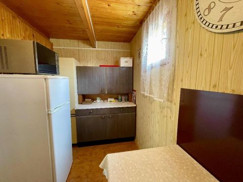 Az ingatlan 52 négyzetméteres, 2+1 szobás, betonalapra épült, faszerkezetű, külső szigetelésének köszönhetően állandó lakhatásra is alkalmas. A közművek közül csak a gáz nincs bevezetve, a víz- és csatornarendszerre rá lett kötve, a rendelkezésreálló 32kW-os áramerősség akár klíma felszerelését is lehetővé teszi.